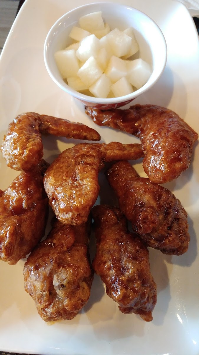 I ordered the Korean BBQ and Garlic Soy Wings with pickled radishes, side of Cole slaw and the Korean Street Corn. Everything was delicious and full of flavor. My favourite was the Korean BBQ wing's seasoning was perfection; the best wings I have ever had in my life. They were cooked with a crunchy outside but moist and tender inside. The corn was a lovely sweet taste with underlying savory notes; the cheese adding a great texture change. The Cole slaw and pickled radishes were fresh and crunchy. I will definitely order from here again and again!